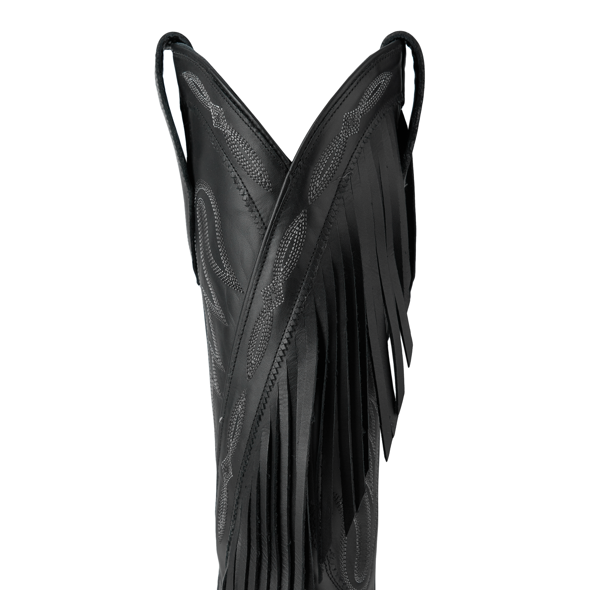 From rodeo to runway this chic boho western cowgirl boot is ready for wherever the night takes you. A modern play on traditional flame stitch & asymmetrical fringe detailing. She's a must have in your closet.