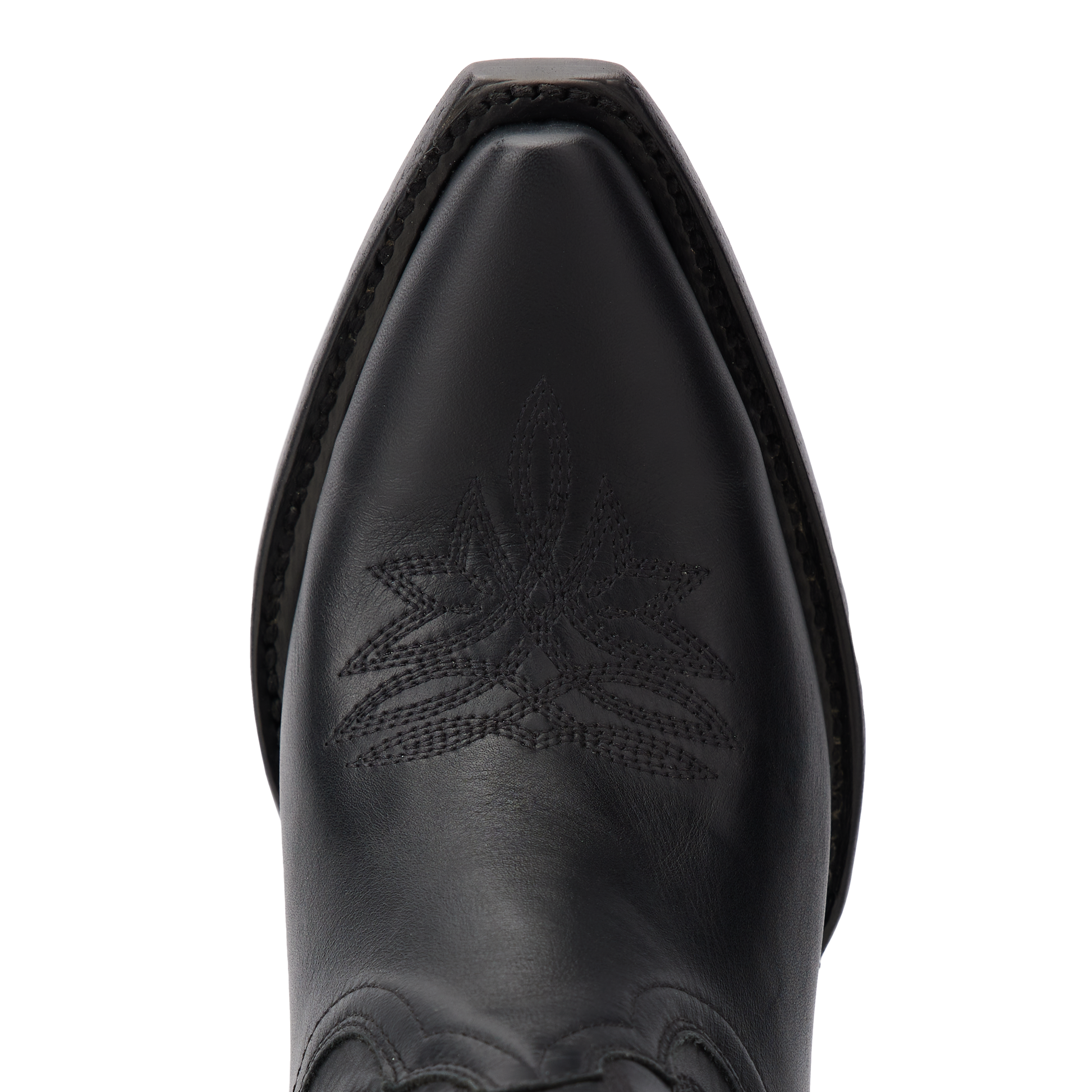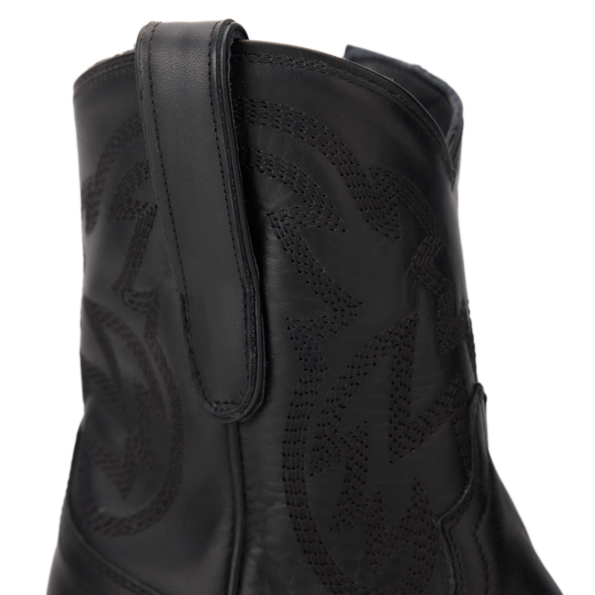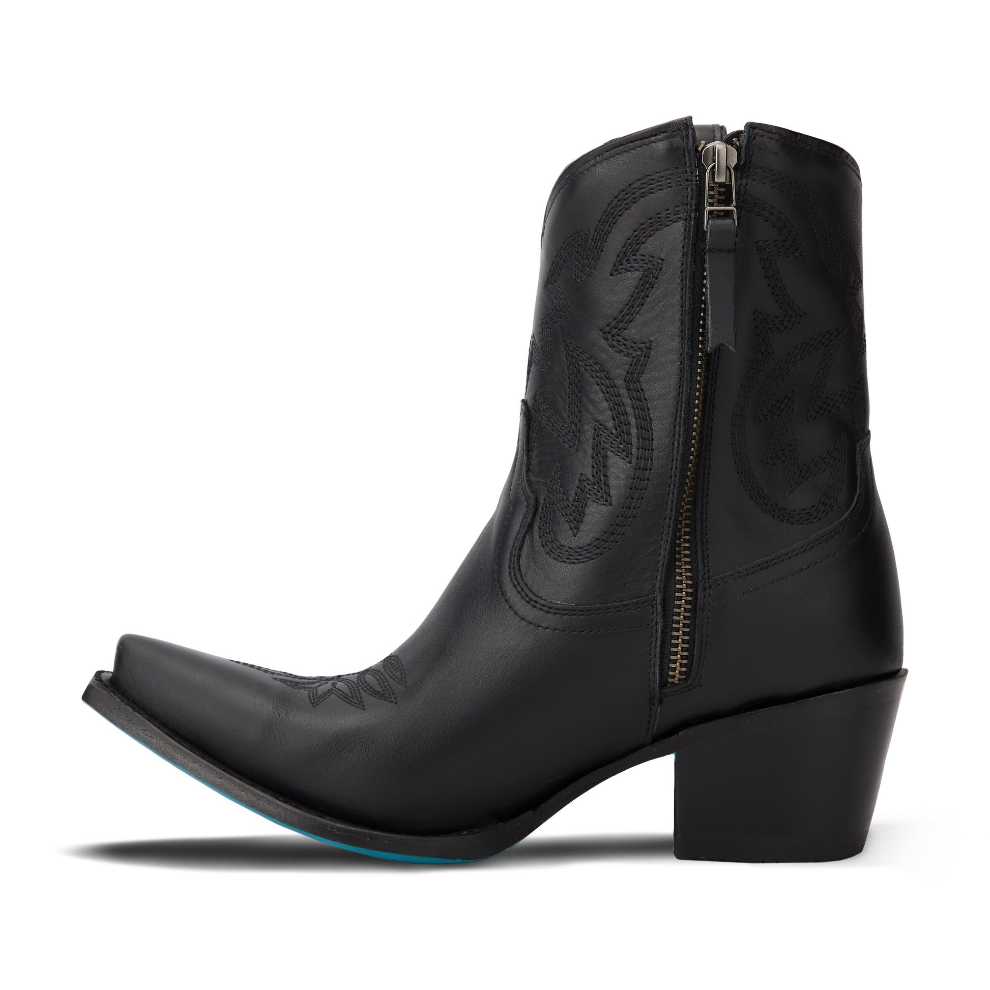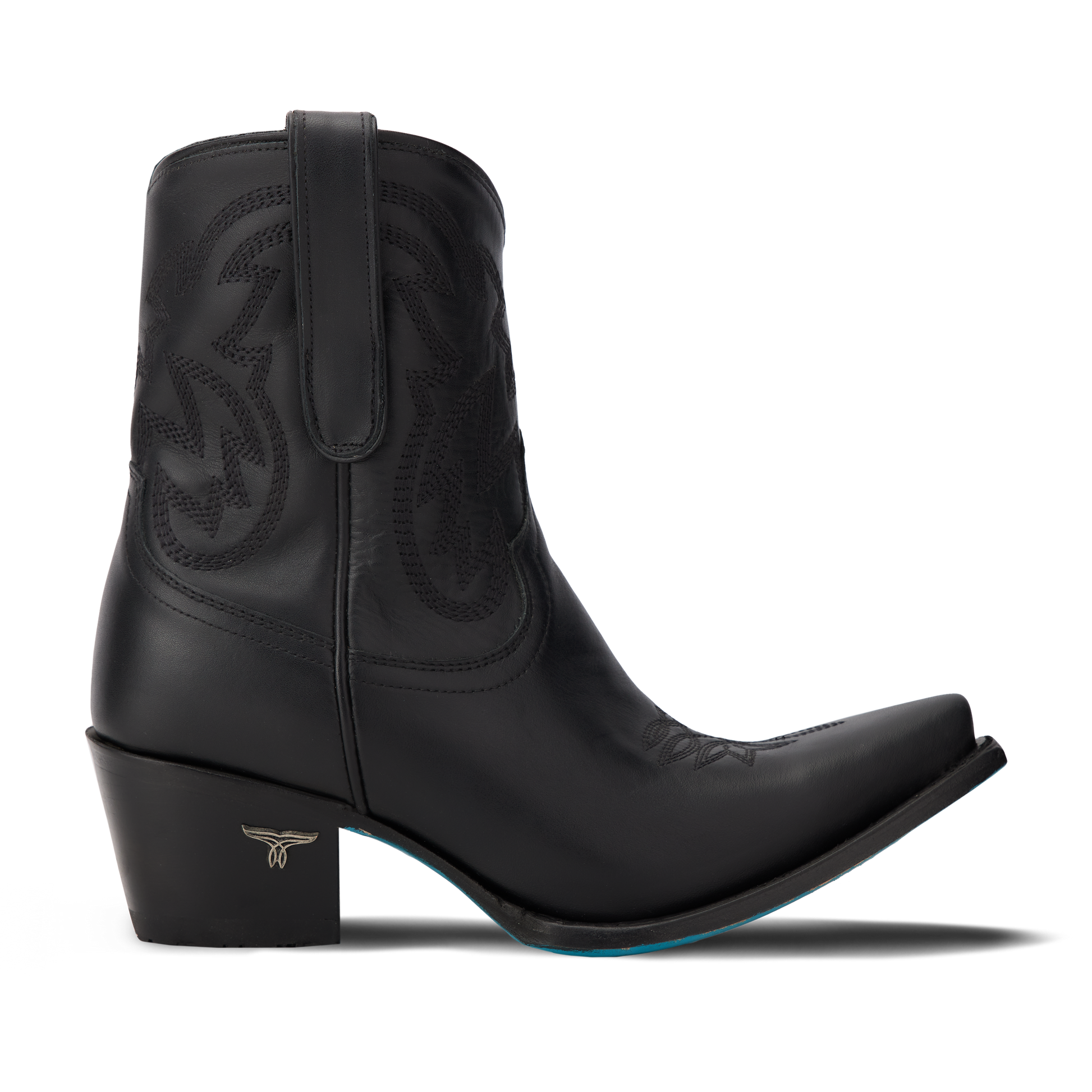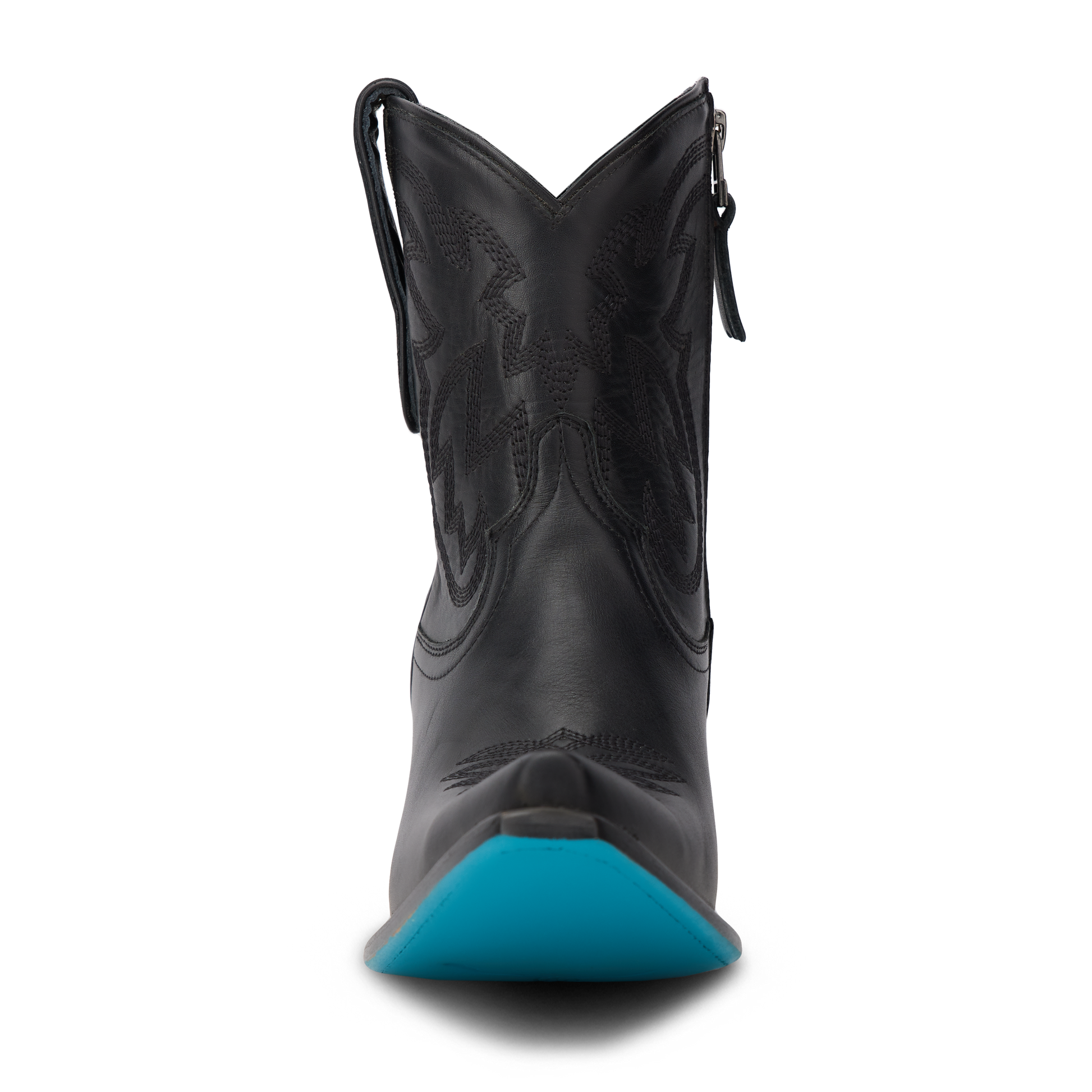 She's the same timeless renegade. A jet black cowgirl bootie right off the runway.