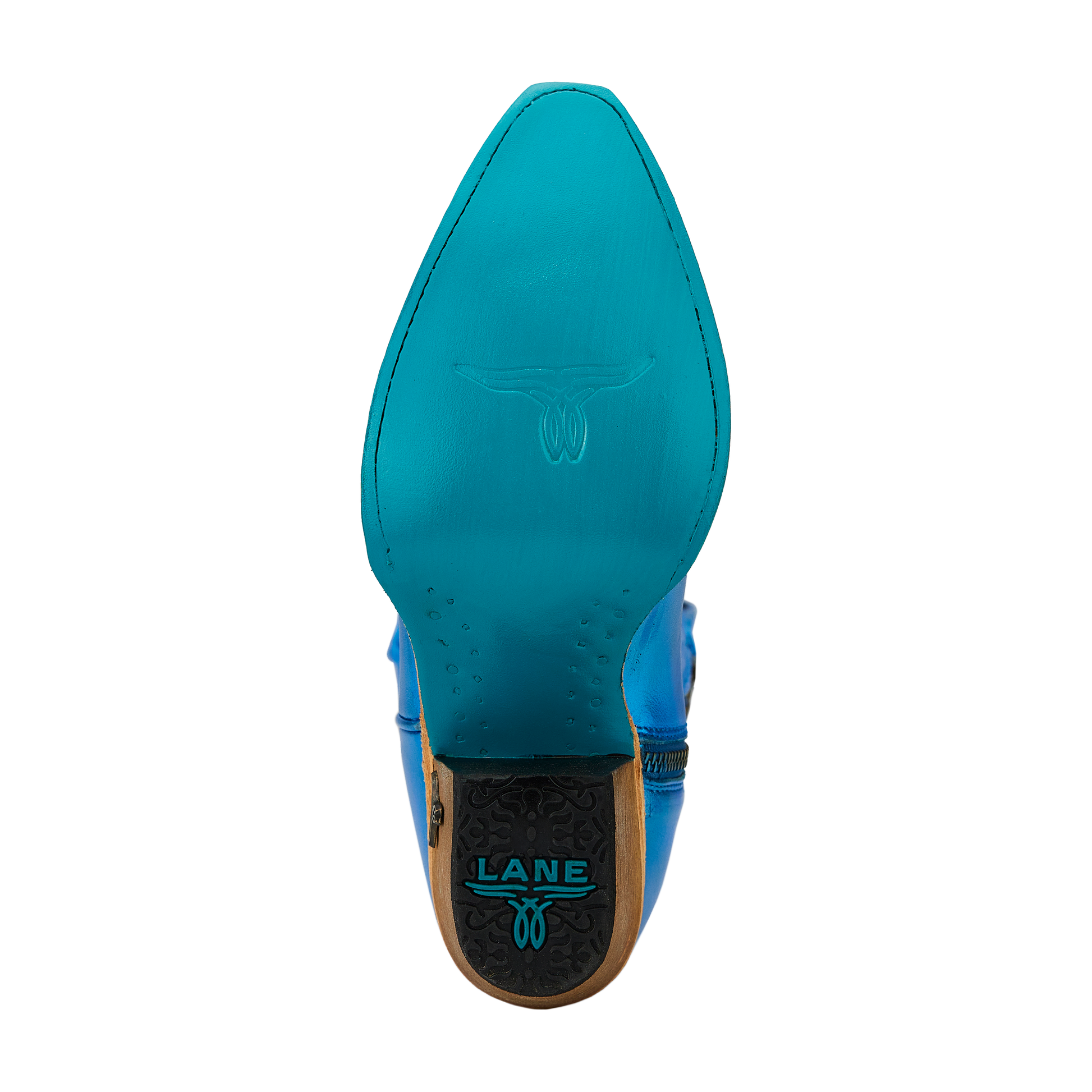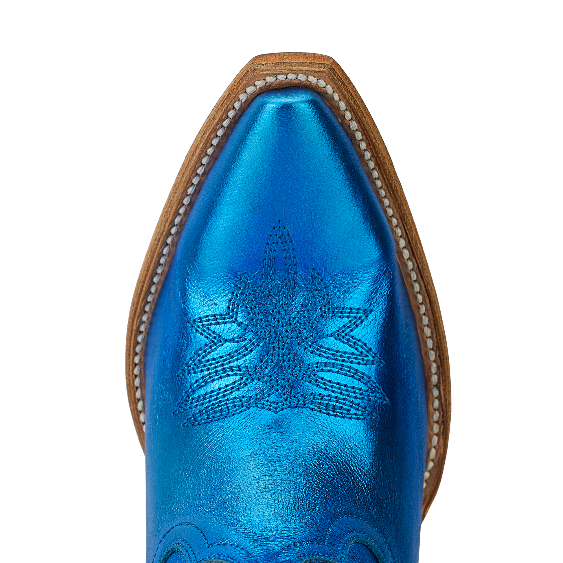 This classic snip toe is accompanied by an abstract cosmic starburst pattern and retro inspired toe stitch. Level up your wardrobe with this blue bottom hottie.