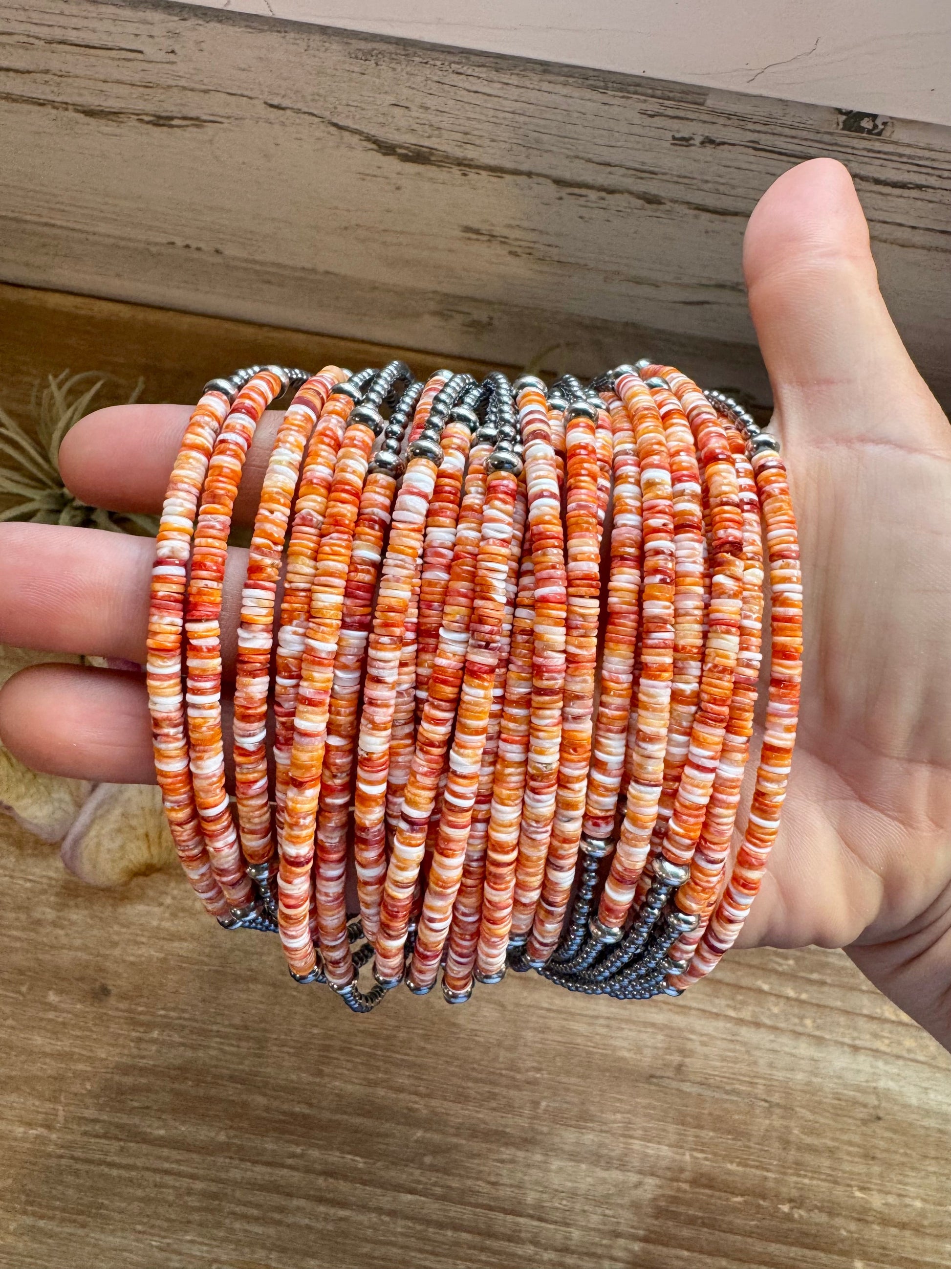 Spiny oyster heishi beads with 3mm and 4mm sterling silver pearls