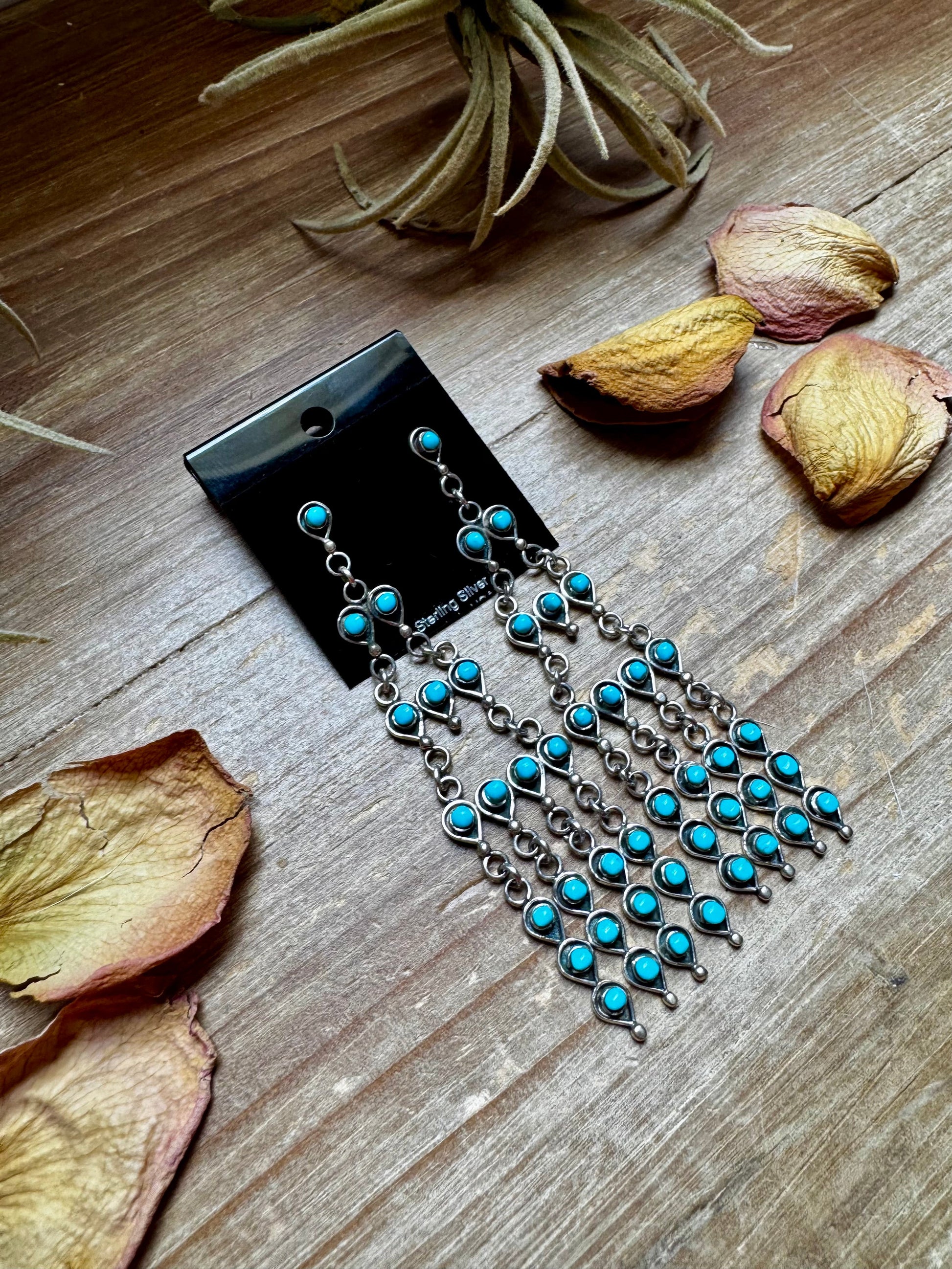 Sterling Silver & Kingman Turquoise Chandelier Earrings – Made in USA