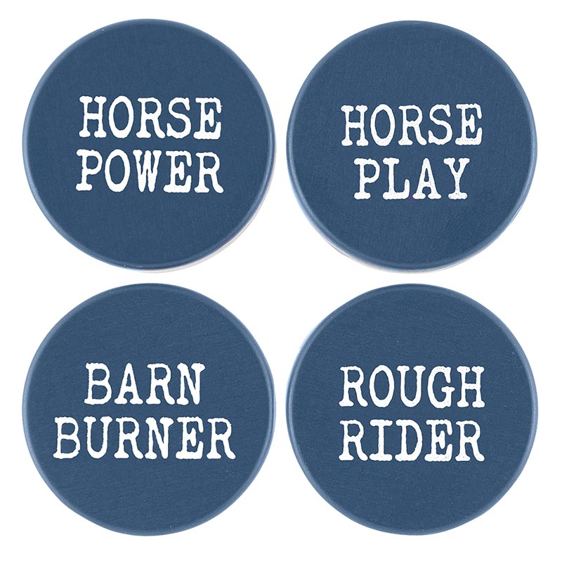 These handy bottle stoppers are here for you when you can't finish that bottle of wine. Pop one on top to keep your wine fresh. A perfect gift for any wine or riding enthusiast. This set includes 4 bottle stoppers packaged in a drawstring bag.