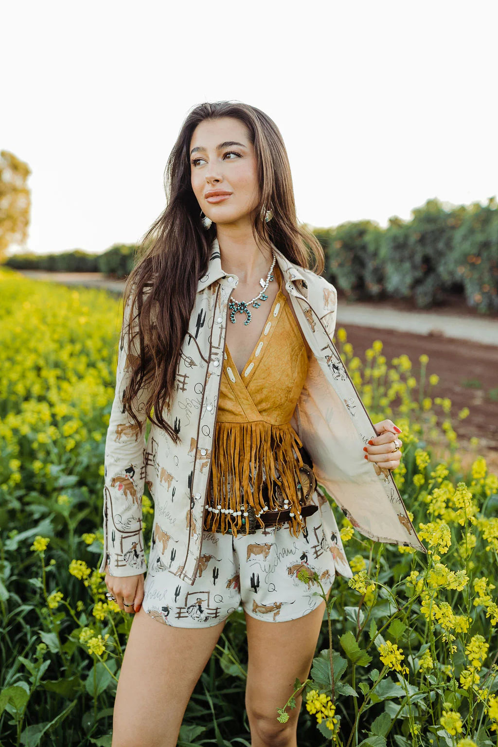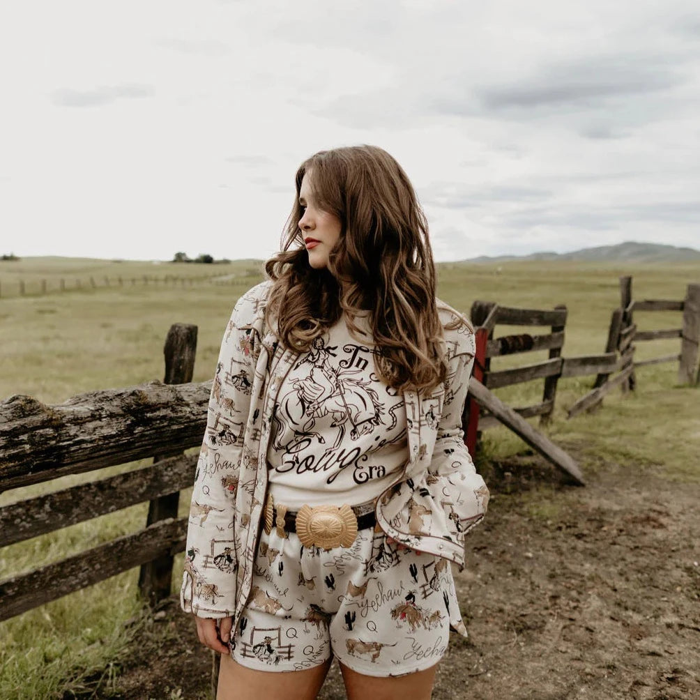 FINAL SALE. Introducing the Yeehaw Button Up, your go-to choice for summer branding. Stay comfortable and cool in this lightweight and breathable button-up with soft fabric and pearl snaps. Perfect for staying stylish and comfortable even in warm weather.